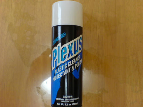 実は昔からケミカル製品大好きで、ネットを見ていたら見つけました”PLEXUS"。物はプラスチック製品の洗浄、コーティング、艶出しスプレーです。しかも樹脂であれば何でも使える!結構ネットでも話題になっているようで、私は某オレンジ色のカーショップで大きいほうと小さいほうがありましたがお試しということで小さいほうを購入しました。・・・でも結構高かったです。