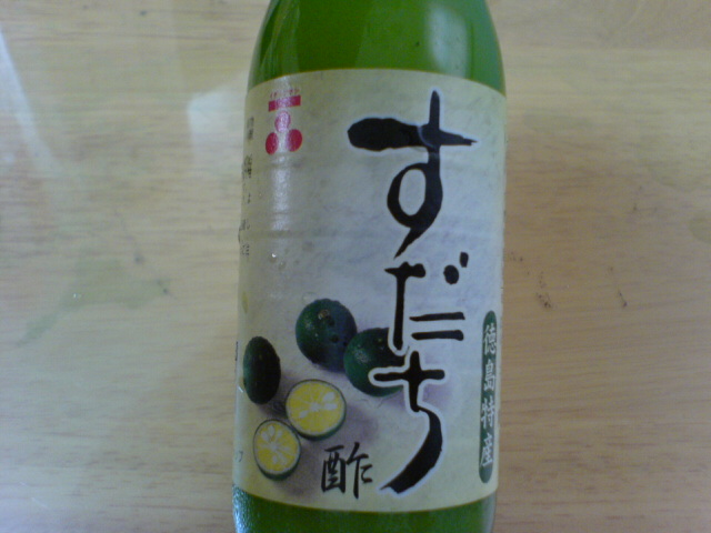 しょうゆうどんに入れるスダチの果汁が欲しくて調べていると、徳島ではすだち酢と言うようで近所のイズミヤに行ったら写真のスダチ酢が置いてありました。早速ゲットして使ってみるとなかなかグットです。